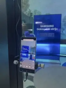 Viesi nostājas pie fotosienas un pozē kamerām. Vairāku kameru tehnoloģija un zibspuldzes rada sarkanā paklāja efektu, un rezultātā tiek izveidots video. Video tiek uzņemts no 6 kamerām, 6 lenkķiem.